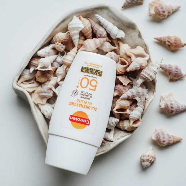 Gør dig klar til at revolutionere din solbeskyttelsesrutine med Carroten Illuminating UV Fluid!