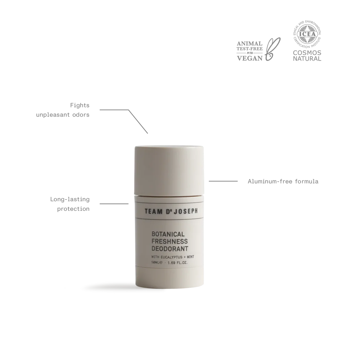 Team Dr Joseph Deodorant er en mild, aluminiumsfri deodorant, der giver langvarig beskyttelse mod ubehagelig lugt uden at irritere huden. Den lette, hurtigtabsorberende formel lader huden ånde, plejer armhulerne og efterlader en ren, naturlig duft.